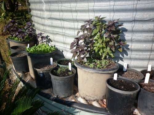Herbs On Corrugated Water Tank, The Old Mango Farm, Eva Valley, Northern Territory, Australia.