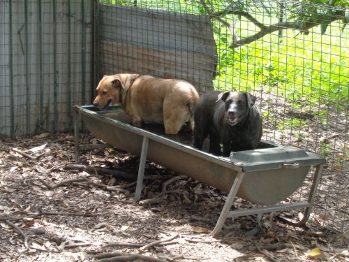 Joey and Bella In Water Trough, The Old Mango Farm, Eva Valley, Northern Territory, Australia.